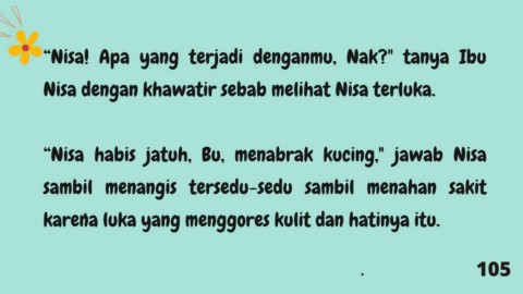 “Nisa habis jatuh, Bu, menabrak kucing," jawab Nisa