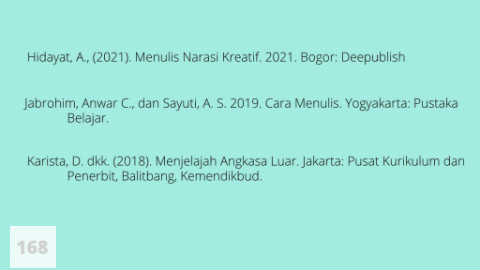 Karista, D. dkk. (2018). Menjelajah Angkasa Luar. Jakarta: Pusat Kurikulum dan