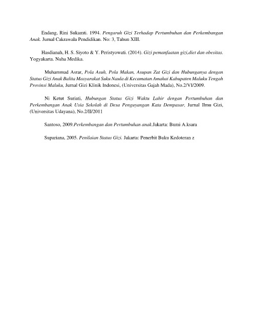 Endang, Rini Sukamti. 1994. Pengaruh Gizi Terhadap Pertumbuhan dan Perkembangan