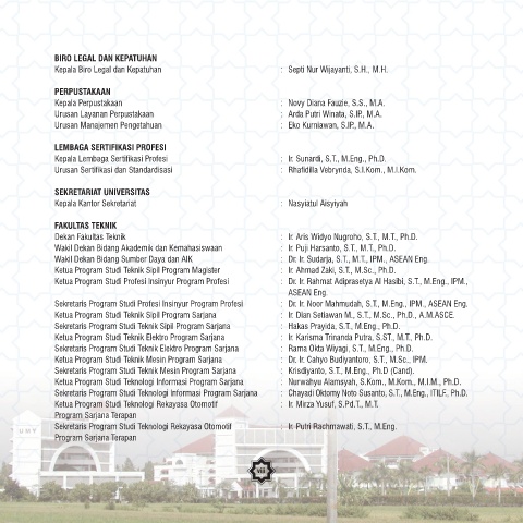 Wakil Dekan Bidang Sumber Daya dan AIK : Dr. Ir. Sudarja, S.T., M.T., IPM., ASEAN Eng.