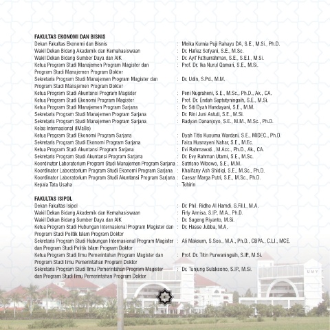 Wakil Dekan Bidang Akademik dan Kemahasiswaan : Dr. Hafiez Sofyani, S.E., M.Sc.
