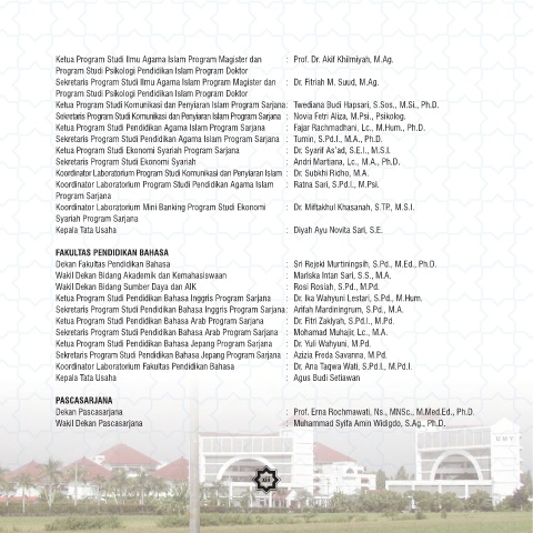 Ketua Program Studi Ilmu Agama Islam Program Magister dan : Prof. Dr. Akif Khilmiyah, M.Ag.