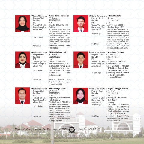 Tempat/Tgl. Lahir : Yogyakarta, 29 September 2002 Tempat/Tgl. Lahir : Padang, 11 Februari 2003