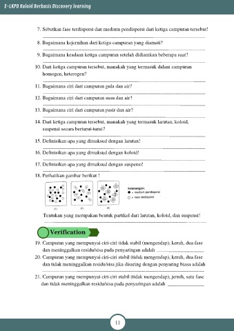 19. Campuran yang mempunyai ciri-ciri tidak stabil (mengendap), keruh, dua fase