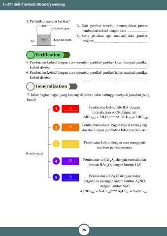 5. Pembuatan koloid dengan cara merubah partikel-partikel kasar menjadi partikel