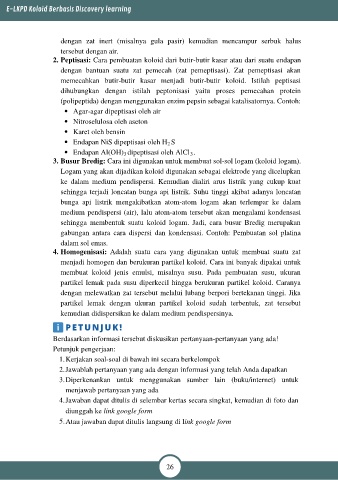 dengan bantuan suatu zat pemecah (zat pemeptisasi). Zat pemeptisasi akan