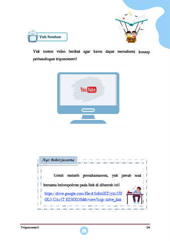 Yuk Nonton Yuk tonton video berikut agar kamu dapat memahami konsep perbandingan trigonometri! Ayo Bekerjasama Untuk melatih pemahamanmu, yuk jawab soal bersama kelompokmu pada link di dibawah ini! Trigonometri 24