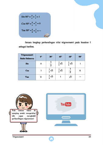 Secara lengkap perbandingan nilai trigonometri pada kuadran I