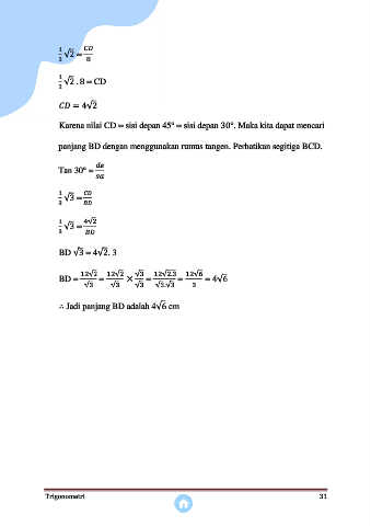 Karena nilai CD = sisi depan 45  = sisi depan 30 . Maka kita dapat mencari