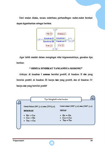 Dari uraian diatas, secara sederhana perbandingan sudut-sudut berelasi