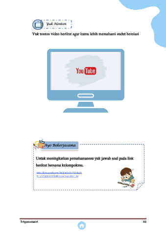 Yuk Nonton Yuk tonton video berikut agar kamu lebih memahami sudut berelasi Ayo Bekerjasama Untuk meningkatkan pemahamanmu yuk jawab soal pada link berikut bersama kelompokmu. Trigonometri 40