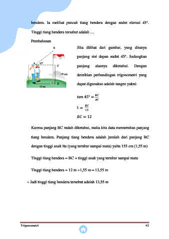 bendera. Ia melihat puncak tiang bendera dengan sudut elavasi 45 .
