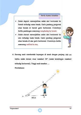 4. Seorang anak membentuk bayangan di tanah dengan panjang 180 cm