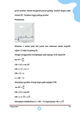 Dengan menggunakan konseptangen pada segitiga AOB, diperoleh