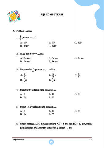 6. Untuk segitiga ABC dimana panjang AB = 5 cm, dan BC = 12 cm, maka