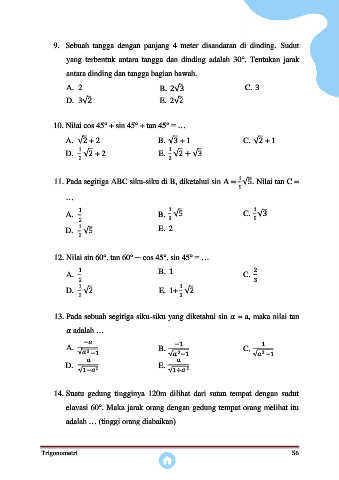 14. Suatu gedung tingginya 120m dilihat dari sutau tempat dengan sudut