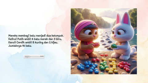 Page 3 - Di sebuah hutan yang indah, hiduplah dua sahabat baik Kelinci Putih dan Kancil Cerdik. Suatu hari, mereka menemukan sebuah peti penuh dengan batu berwarna-warni di tepi sungai. Keduanya sangat sen_Neat