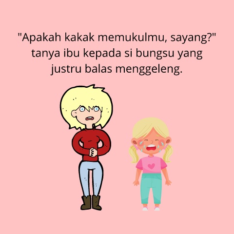 "Apakah kakak memukulmu, sayang?" tanya ibu kepada si bungsu yang justru balas menggeleng.
