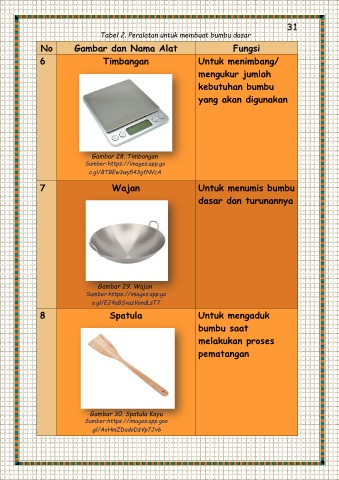 Tabel 2. Peralatan untuk membuat bumbu dasar