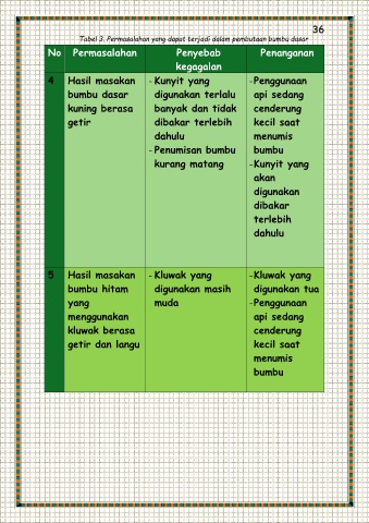 Tabel 3. Permasalahan yang dapat terjadi dalam pembutaan bumbu dasar