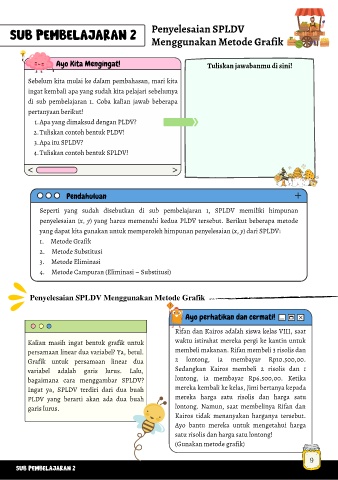 persamaan linear dua variabel? Ya, betul. membeli makanan. Rifan membeli 3 risolis dan