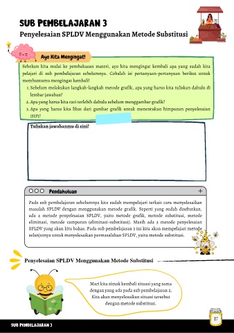 SPLDV yang akan kita bahas. Pada sub pembelajaran 3 ini kita akan mempelajari metode