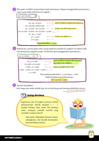 3x + 2y = 10.500 ganti variabel y dengan persamaan (3)