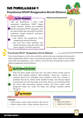 situasi pada sub pembelajaran 2 dan 3. Namun, di sini kita akan menyelesaikan situasi tersebut