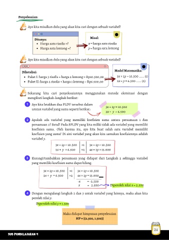 Paket II: harga 2 risolis + harga 1 lontong = Rp6.500,00 2x + y = 6.500 ..... (2)