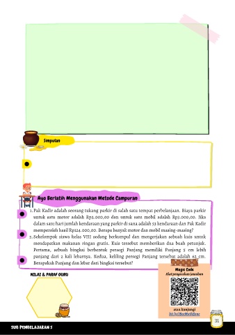 panjang dari 2 kali lebarnya. Kedua, keliling persegi Panjang tersebut adalah 62 cm.