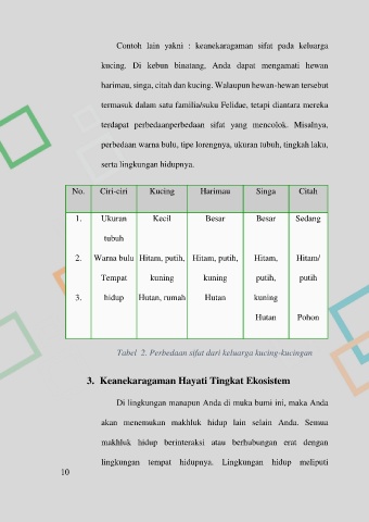 Tabel 2. Perbedaan sifat dari keluarga kucing-kucingan