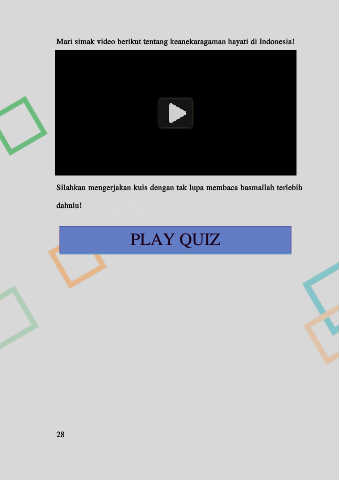 Mari simak video berikut tentang keanekaragaman hayati di Indonesia! Silahkan mengerjakan kuis dengan tak lupa membaca basmallah terlebih dahulu! PLAY QUIZ 28