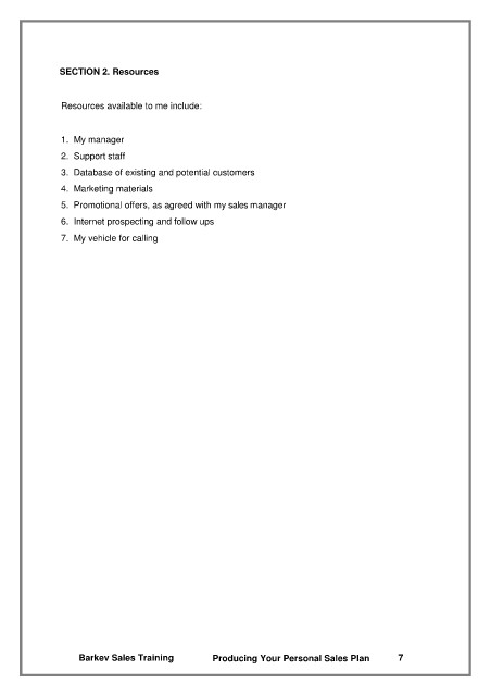 Barkev Sales Training Producing Your Personal Sales Plan 7