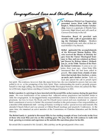 Bethel considers it a privilege to have traveled with Reverend Ellis on her journey during the past three