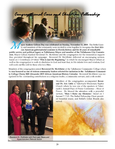 ayor Andrew Gillum Day was celebrated on Sunday, November 11, 2019. The Bethel fami-