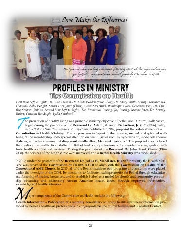 he promotion of healthy living as a principle ministry objective of Bethel AME Church, Tallahassee,