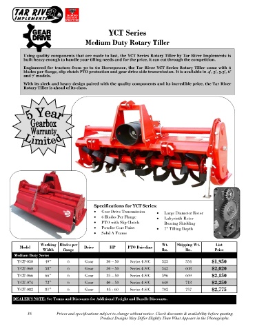 Engineered for tractors from 30 to 60 Horsepower, the Tar River YCT Series Rotary Tiller come with 6