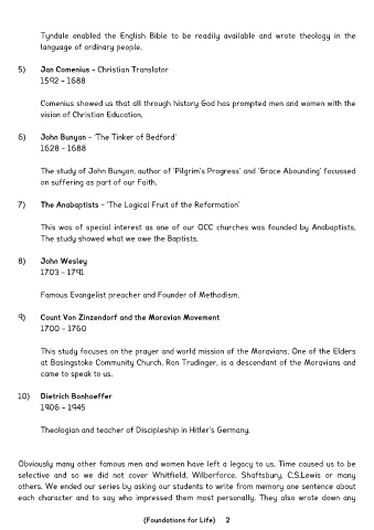 selective and so we did not cover Whitfield, Wilberforce, Shaftsbury, C.S.Lewis or many