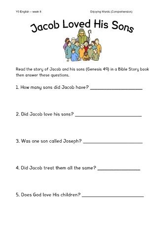 Y0 English – week 8 Enjoying Words (Comprehension)
