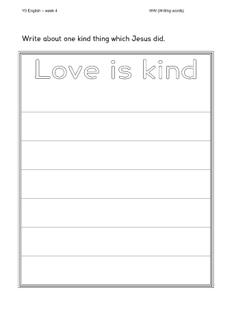 Y0 English – week 4 WW (Writing words) Write about one kind thing which Jesus did.
