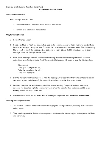3. Have these messages jumbled on the board ensuring that the children recognise words like – ark,