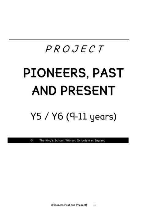 P R O J E C T PIONEERS, PAST AND PRESENT Y5 / Y6 (9-11 years) © The King’s School, Witney, Oxfordshire, England (Pioneers Past and Present) 1