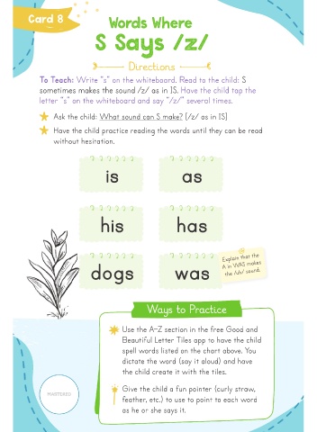 • Ask the child: What sound can S make? [/z/ as in IS]