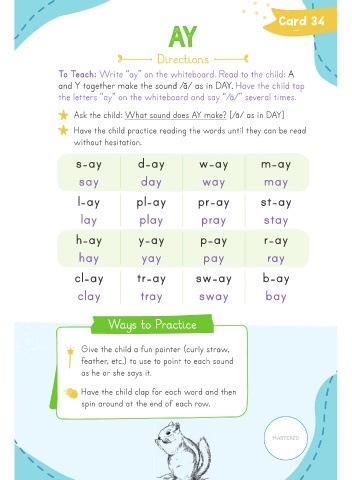 • Ask the child: What sound does AY make? [/¾/ as in DAY]