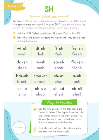 To Teach: Write “sh” on the whiteboard. Read to the child: S and