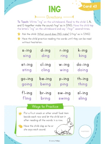 • Ask the child: What sound does ING make? [/âng/ as in SING]