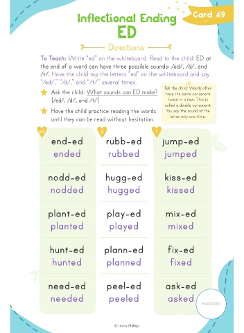To Teach: Write “ed” on the whiteboard. Read to the child: ED at