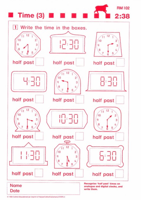 Name Recognise 'half past' times on