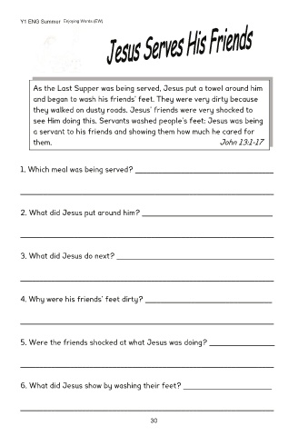 6. What did Jesus show by washing their feet? _______________________