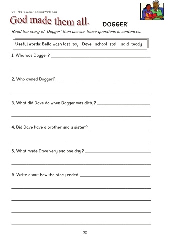 Read the story of ‘Dogger’ then answer these questions in sentences.